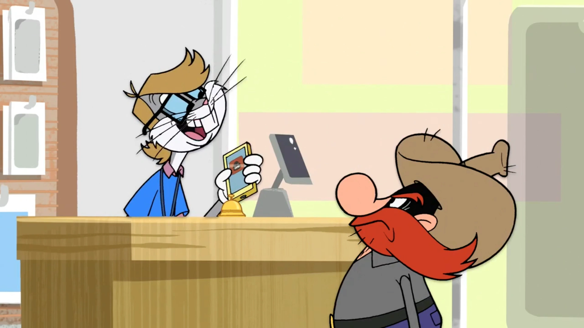 After a run-in with Bugs, Yosemite Sam’s cell phone gets scratched. He decides it’s time to upgrade, but little does he know that Bugs is there to help.