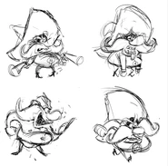 As compared to the classic Yosemite Sam, he retains his signature big, red mustache and eyebrows as well as his famous black mask and 10 gallon hat. Contrasted from his original design, Wabbit's version of Yosemite has a much longer nose and stouter body composition. His hat is also different.